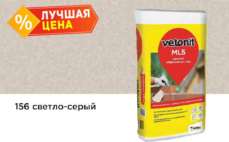 Цветной кладочный раствор weber.vetonit МЛ 5, светло-серый, №156, 25 кг