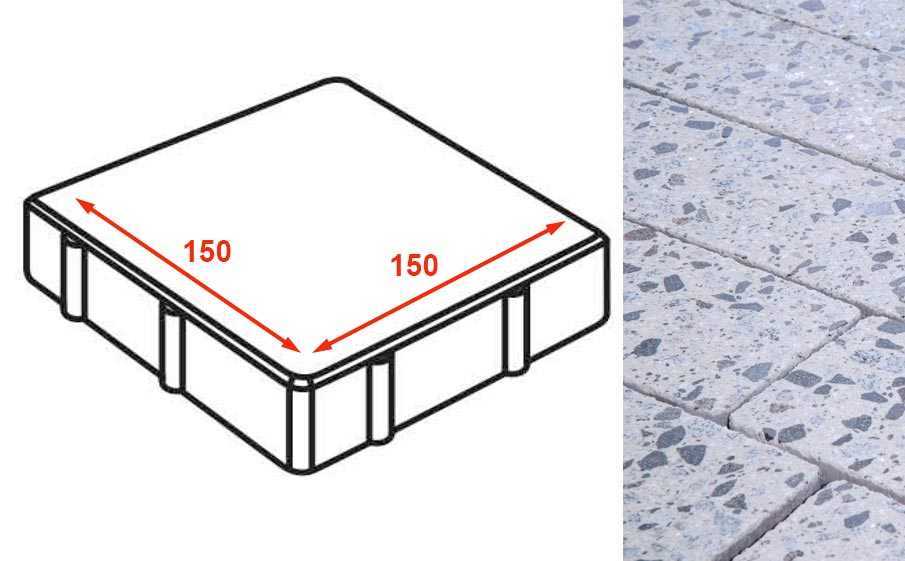 Плита тротуарная Готика Granite FINERRO, квадрат, Грис Парга 150x150x80 мм